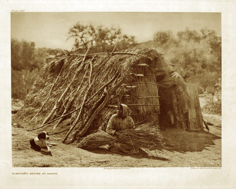 A photo from 1924 by Edward S. Curtis from The North American Indian (1907-1930) v.15, Southern California Shoshoneans. The Dieguenos Plateau Shoshoneans. The Washo ([Seattle] : E.S. Curtis ; [Cambridge, Mass. : The University Press], 1926), plate no. 525